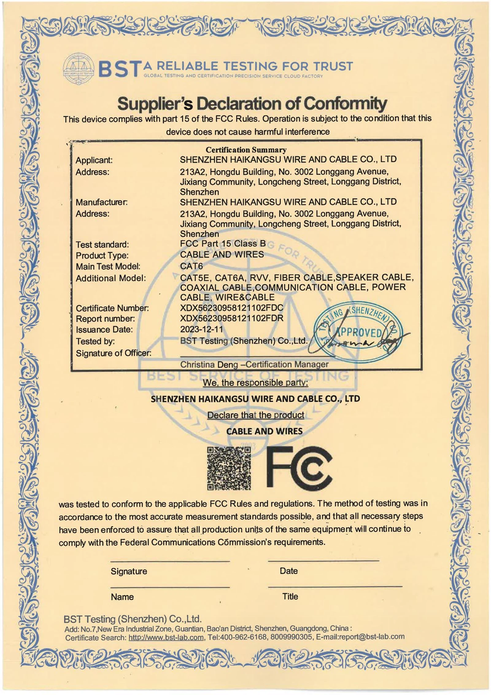 Our Certificate